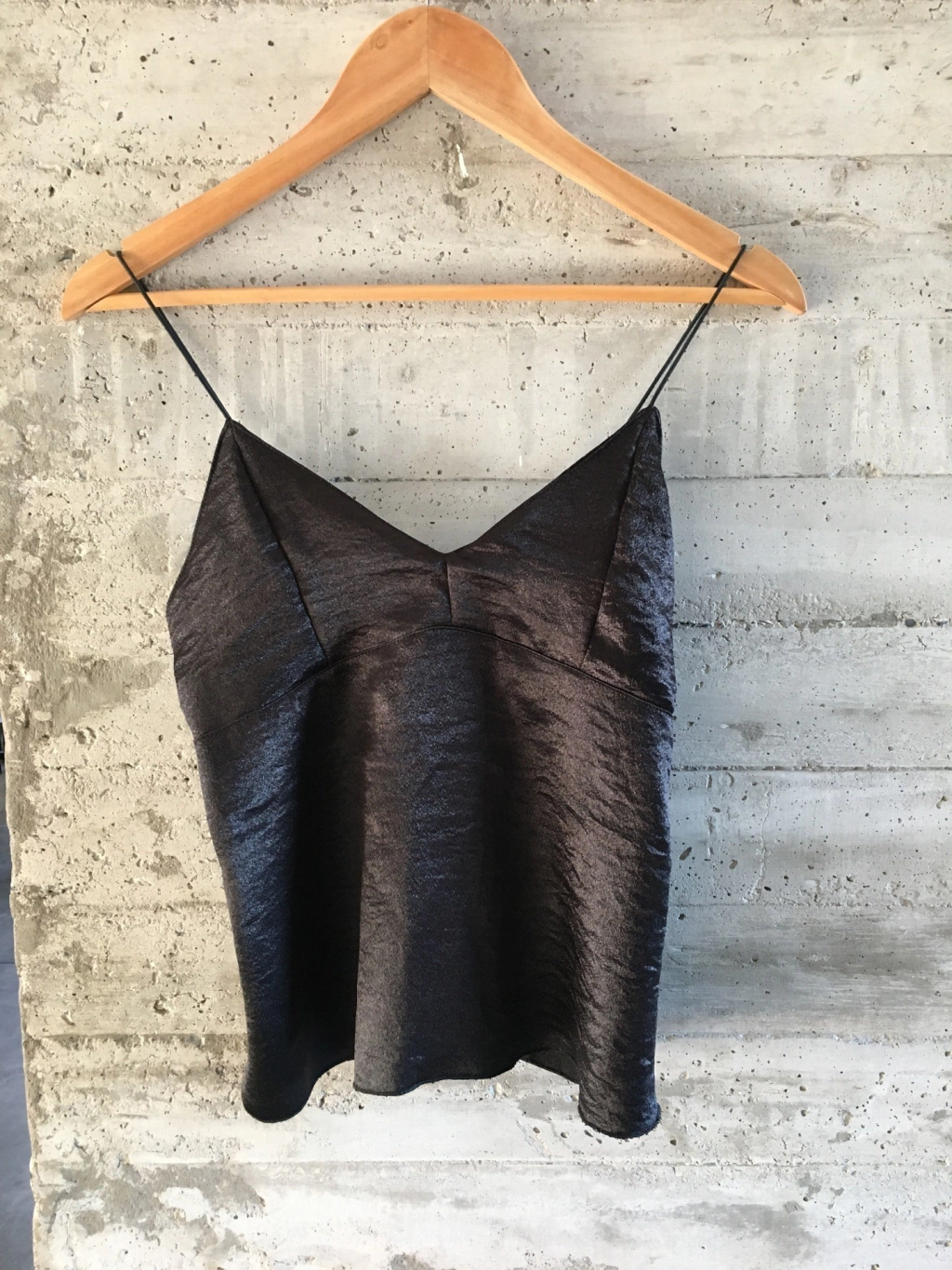 Musculosa de satén con bretel expandible, con escote en V y elástico en espalda.