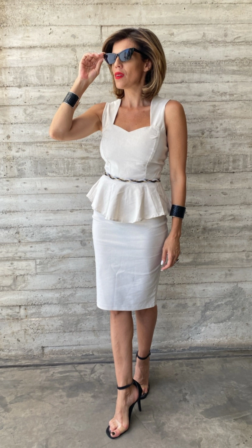 Pollera tubo cintura alta con tajo corto en la parte tracera